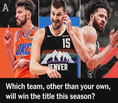 4月13日,NBA常規(guī)賽落幕,美國(guó)知名媒體《The Athletic》發(fā)布一項(xiàng)球員匿名調(diào)查,問(wèn)題為:“除了自己球隊(duì),你認(rèn)為哪支球隊(duì)能奪冠?”,結(jié)果在146份調(diào)查中,雷霆被50%的球員認(rèn)為能奪冠,遠(yuǎn)遠(yuǎn)領(lǐng)先