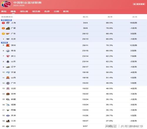 CBA最新排名!廣東升第3,北京掉第5,浙江漁翁得利,3隊(duì)爭第12