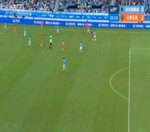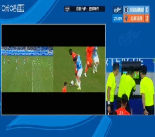 體育播報(bào)04月12日宣 中超第5輪,深圳新鵬城vs云南玉昆,比賽第26分鐘,卡約胸部停球,約尼查直塞,前者小角度推射破門,裁判在場(chǎng)邊看完VAR后判定進(jìn)球有效,玉昆2-0領(lǐng)先新鵬城。