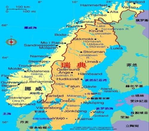 瑞典位于斯堪的納維亞半島東部的國(guó)家,東面瀕波羅的海和波的尼亞灣,因此有漫長(zhǎng)的海岸線。西面為斯堪的納維亞山脈,也是瑞典和挪威的分界線。