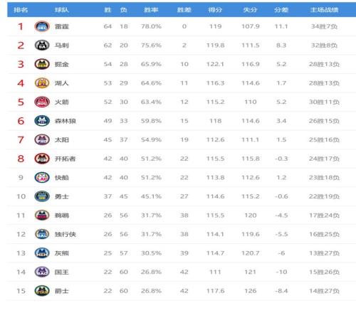 開拓者贏球后42勝40負,戰(zhàn)績和快船一樣,兩隊相互交手2-2戰(zhàn)平,由于開拓者面對西部球隊?wèi)?zhàn)績更好,所以開拓者排名西部第八,快船排第九。國王輸球后22勝60負,排名西部第14。