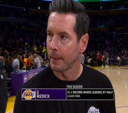 轉(zhuǎn)播方在中場時曬出數(shù)據(jù),本賽季湖人半場領(lǐng)先時,戰(zhàn)績高達(dá)35勝2負(fù)。