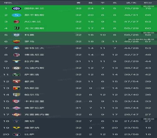 北京時(shí)間4月13日,隨著國(guó)米4-3險(xiǎn)勝科莫的比賽結(jié)束,意甲第32輪已經(jīng)結(jié)束了9場(chǎng)比賽,我們看看最新積分榜變動(dòng)!