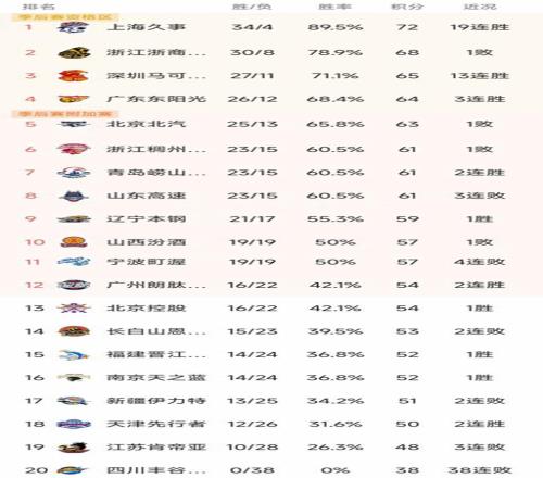 CBA最新積分榜