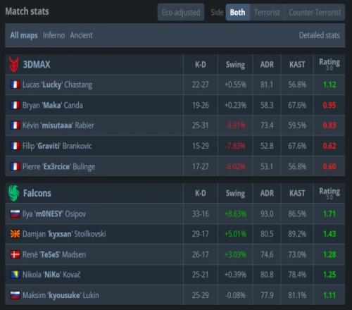 Falcons:NiKo、TeSeS、kyxsan、m0NESY、kyousuke