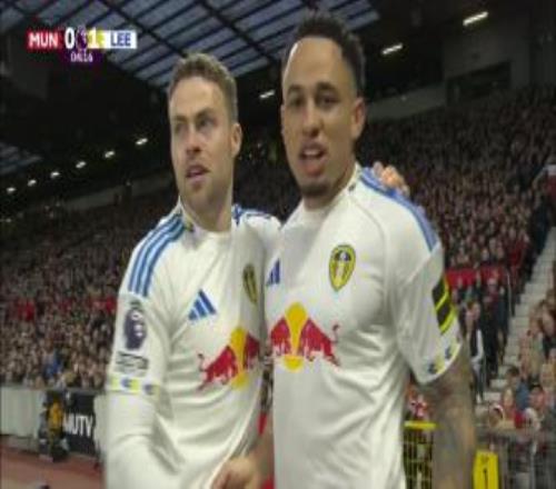 第5分鐘,利茲聯(lián)右路進(jìn)攻,博格下底傳中,門前約羅和勒溫爭(zhēng)搶第一點(diǎn),皮球來(lái)到后點(diǎn)奧卡福腳下,后者輕松破門!曼聯(lián)主場(chǎng)0-1落后↓