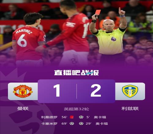 體育播報(bào)4月14日宣 英超第32輪,曼聯(lián)坐鎮(zhèn)主場(chǎng)老特拉福德球場(chǎng)迎戰(zhàn)利茲聯(lián)。上半場(chǎng),拉門斯神撲,奧卡福雙響,利桑德羅門線解圍。易邊再戰(zhàn),利桑德羅拉拽勒溫頭發(fā)吃到直紅,B費(fèi)助攻卡塞米羅建功。最終曼聯(lián)1-2利茲聯(lián)。積分榜方面,曼聯(lián)55分第三,利茲聯(lián)36分第十五。