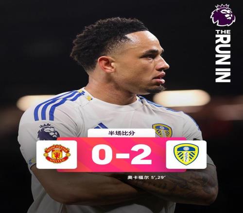上半場(chǎng)比賽結(jié)束,曼聯(lián)0-2落后利茲聯(lián)。