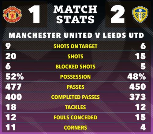 在進攻端,阿馬德·迪亞洛、謝什科和庫尼亞的射門效率也不高,未能威脅到利茲聯(lián)球門。第30分鐘,曼聯(lián)本方禁區(qū)搶頭球又輸給布倫丹·阿倫森,后者頭球擺給奧卡福,瑞士前鋒禁區(qū)弧遠射破門梅開二度,曼聯(lián)0-2利茲聯(lián)。