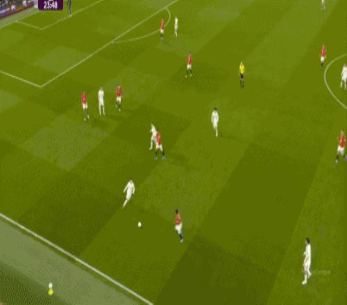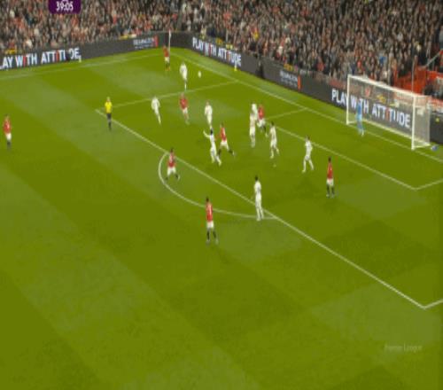 就在后續(xù)的進(jìn)攻里,利茲聯(lián)打開寬度,由翼衛(wèi)從左邊送上傳中,這個(gè)時(shí)候的曼聯(lián)就已經(jīng)需要拉門斯救命了: