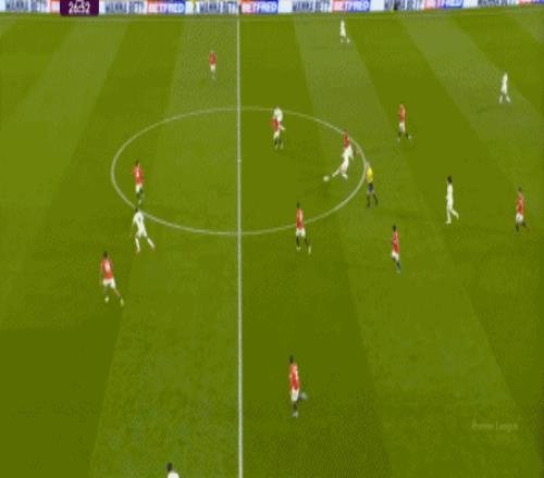 所以在這場(chǎng)比賽,曼聯(lián)擺出的這套陣容就決定了,中后場(chǎng)天然存在面對(duì)壓力的退縮傾向,很容易越打越害怕,越害怕越縮,就像22分鐘連續(xù)被輸出身體的利茲聯(lián)直接搶斷,從而連續(xù)應(yīng)對(duì)防守壓力這樣: