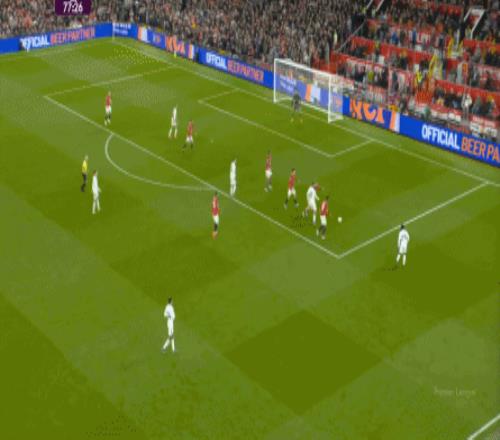 點(diǎn)燃了主場(chǎng)的氣氛之后,曼聯(lián)的表現(xiàn)有了一些提振,從而打出了一段連續(xù)的轉(zhuǎn)換進(jìn)攻: