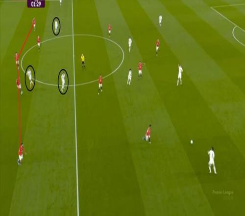 這是難免的事情,畢竟在中衛(wèi)線上,約羅和利桑德羅-馬丁內(nèi)斯就始終找不到辦法來限制勒溫的發(fā)揮,這一點(diǎn)就讓利茲聯(lián)總有機(jī)會(huì)把攻勢(shì)連接到兩側(cè),進(jìn)而打擊曼聯(lián)的防守寬度問題: