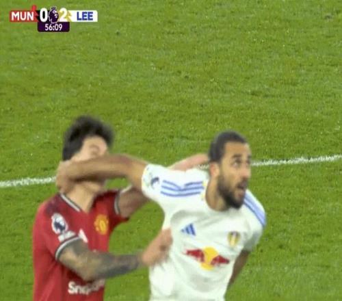 下半場(chǎng)比賽,曼聯(lián)不僅沒能扭轉(zhuǎn)局勢(shì),反而屋漏偏逢連夜雨,再遭重?fù)?。?5分鐘,賽場(chǎng)上出現(xiàn)了極具爭(zhēng)議的一幕,曼聯(lián)中衛(wèi)利桑德羅-馬丁內(nèi)斯在與對(duì)方前鋒勒溫拼搶時(shí),手上有一個(gè)拽對(duì)方頭發(fā)的動(dòng)作,裁判在查看VAR之后,直接向利桑德羅出示紅牌,將他罰下場(chǎng)!這可是利桑德羅曼聯(lián)生涯以來,首次被直接紅牌罰下。