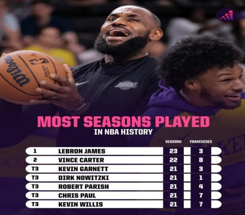 2.詹姆斯打完了職業(yè)生涯第23個(gè)賽季歷史第一,第二的是卡特;