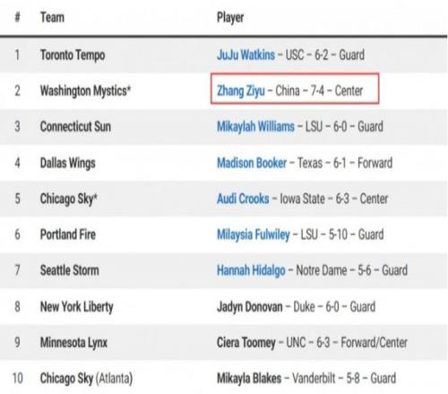中國(guó)巨人!張子宇2027年將獲WNBA選秀資格知名網(wǎng)站預(yù)測(cè)成榜眼