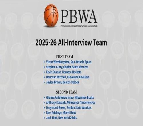 2025-26賽季的上述獎(jiǎng)項(xiàng)得主將于本周公布。職業(yè)籃球作家協(xié)會(huì)(PBWA)由200多名作家和編輯組成,他們定期為報(bào)紙、雜志和在線新聞媒體報(bào)道NBA和WNBA賽事。