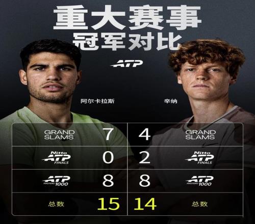 辛納將在4月13日重返 ATP排名NO.1,屆時(shí)他的第一周數(shù)將來到67周,以微弱優(yōu)勢領(lǐng)先阿爾卡拉斯的66周。