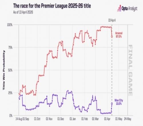體育播報(bào)4月14日宣 曼城3-0客勝切爾西,少賽一場落后阿森納6分。不少人開始看好曼城能逆轉(zhuǎn)奪冠,但數(shù)據(jù)網(wǎng)站OPTA仍看好阿森納奪冠,他們列出了槍手可以保持樂觀的五大理由。