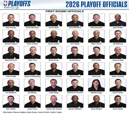 體育播報4月14日宣 今日NBA官方公布了今年季后賽首輪的裁判36人大名單(包括附加賽),名哨福斯特領(lǐng)銜。