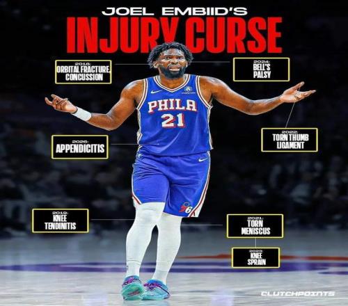 如果他能夠健康輸出,這自然是一份合適的超巨合約,但從現(xiàn)實(shí)看,恩比德幾乎每個賽季都被傷病纏身。攤開他的季后賽傷病史,已經(jīng)是一本厚厚的病歷本了: