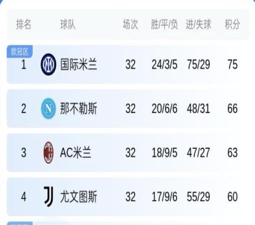 本輪意甲,國(guó)米4-3逆轉(zhuǎn)科莫,早些結(jié)束的那不勒斯1-1帕爾馬。最新積分榜,國(guó)米剩余6輪以9分優(yōu)勢(shì)領(lǐng)跑!