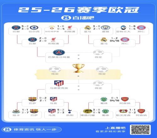 歐冠4強決出2席:巴黎靜候皇仁大戰(zhàn)勝者,馬競將戰(zhàn)阿森納葡體勝者