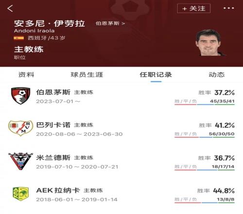 伯恩茅斯官方:主帥伊勞拉賽季末合同到期離任,結束三年執(zhí)教