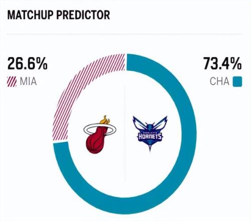 賽前,美媒ESPN對本場比賽進行了預測,熱火勝率意外僅有可憐的26.6% ,黃蜂勝率高達73.4% ,優(yōu)勢明顯。