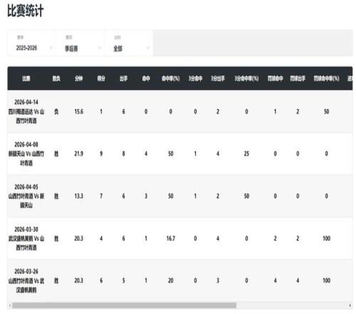 陳玉婕身高1.78米,她在進(jìn)入季后賽后的表現(xiàn)一言難盡,1分、9分、7分、4分、6分。場均18.3分鐘,拿到5.4分2助攻2.2籃板0.8搶斷,命中率29%,三分命中率13.3%,表現(xiàn)可以說是拉胯至極。