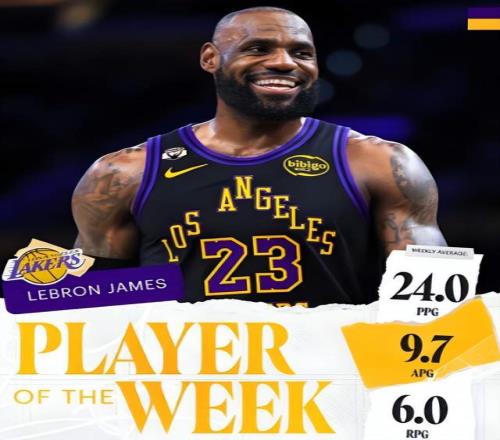 昨日,NBA官方公布了常規(guī)賽第25周的周最佳球員,東部周最佳給到猛龍英格拉姆,而西部周最佳歸屬于湖人老將詹姆斯。