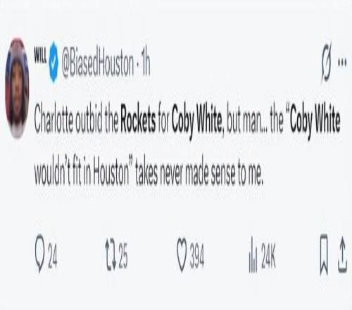 休媒Steunna寫道:火箭隊(duì)真的錯過了科比-懷特。