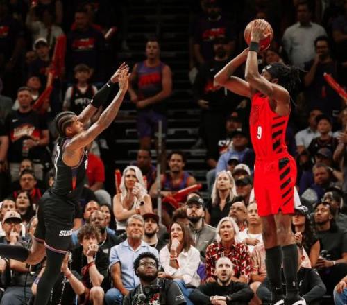 末節(jié)太陽乘勝追擊,一度反超了10分,開拓者沒有放棄,阿夫迪亞連續(xù)沖擊內(nèi)線造犯規(guī),格蘭特命中了關(guān)鍵三分,古德溫上籃幫助太陽再次反超1分。決戰(zhàn)時刻,阿夫迪亞打成2+1,太陽最后一投未果,格林失絕殺,格蘭特反擊殺死比賽,最終開拓者114-110掀翻太陽!
