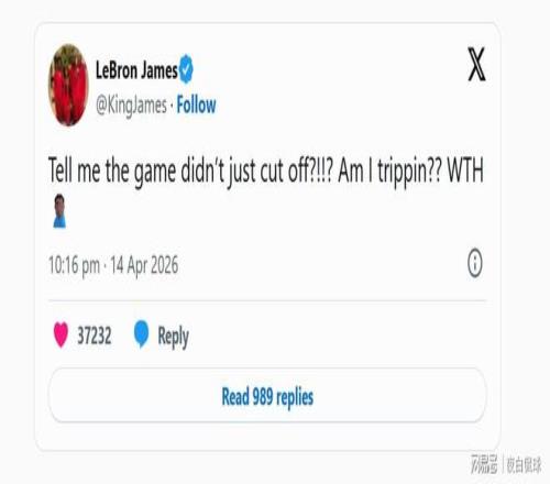 在黃蜂沖擊附加賽勝利的關(guān)鍵時(shí)刻,直播信號突然中斷,詹姆斯立刻在社交平臺發(fā)文吐槽:“告訴我比賽不是剛斷了?!是我看錯(cuò)了嗎?搞什么啊?”