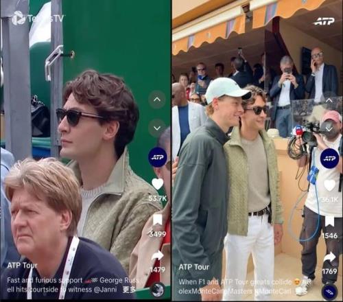 F1梅賽德斯車隊(duì)車手喬治·拉塞爾現(xiàn)身蒙特卡洛大師賽,不僅現(xiàn)場(chǎng)觀看了揚(yáng)尼克·辛納的八強(qiáng)戰(zhàn),還出現(xiàn)在了2026賽季首場(chǎng)“辛卡對(duì)決”的看臺(tái)上。