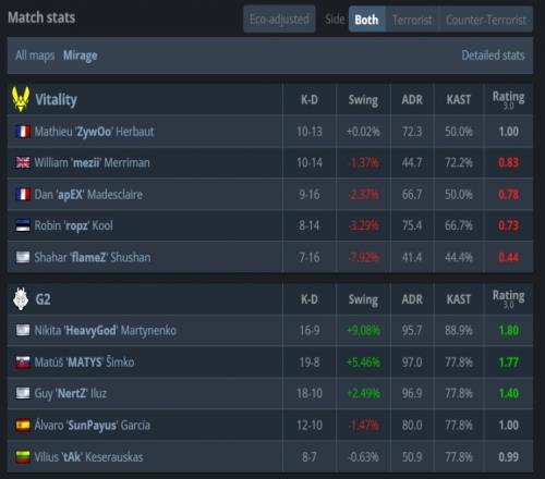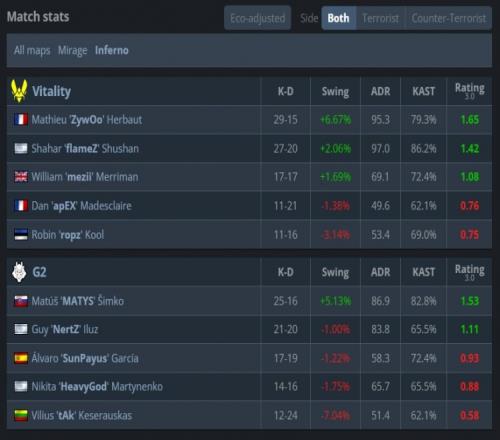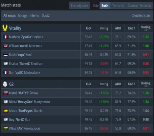 Vitality:mezii、apEX、ropz、flameZ、ZywOo