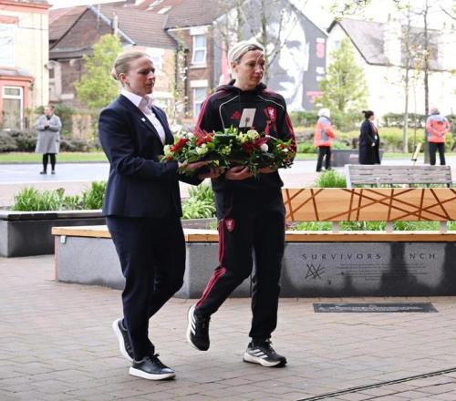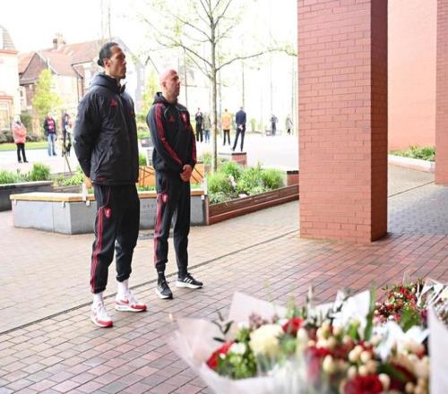 為表達(dá)哀思,利物浦一線隊(duì)、女隊(duì)以及U21、U18梯隊(duì)的主教練和隊(duì)長范戴克今日前往安菲爾德的希爾斯堡紀(jì)念碑獻(xiàn)上花圈。俱樂部高層也參與其中,包括首席執(zhí)行官比利-霍根、傳奇球星達(dá)格利什爵士,以及俱樂部大使伊恩-拉什和娜塔莎-道伊。