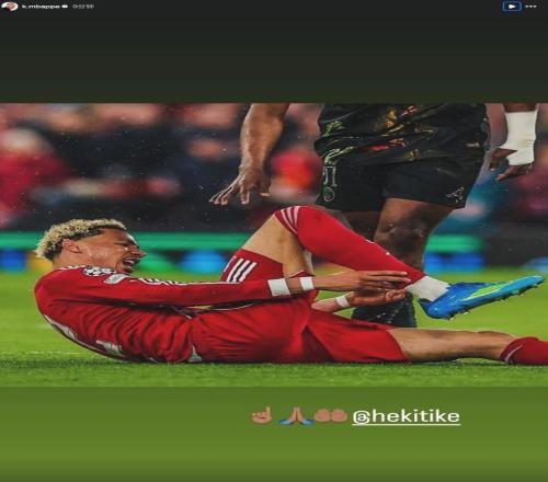在利物浦的法國前鋒?;倏嗽馐苤貍?,姆巴佩在社交媒體表達祝福和祈禱。
