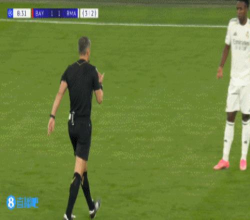 第9分鐘,維尼修斯絆倒基米希后又故意推倒對方,裁判口頭警告維尼修斯。↓