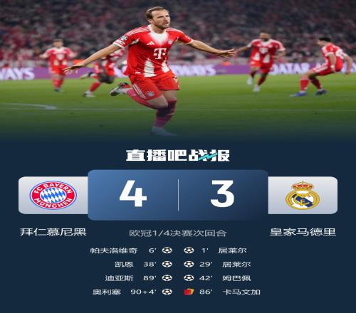 名局!拜仁43總比分64十人皇馬迪亞斯、奧利塞制勝居萊爾雙響