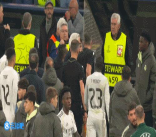 賽后,維尼修斯、貝林厄姆等皇馬球員找裁判抗議,居萊爾被出示紅牌!↓