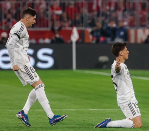 第29分鐘,皇馬再次進(jìn)球!居萊爾任意球直接射門,皮球越過(guò)人墻,鉆入球門右上角!居萊爾竟然梅開(kāi)二度。第38分鐘,凱恩在禁區(qū)內(nèi)推射破門,再次扳平比分。3分鐘后,維尼修斯射門擊中門框彈出。第42分鐘,皇馬再次領(lǐng)先。維尼修斯突入禁區(qū)后送出橫傳。姆巴佩后插上,得球后單刀推射破門。半場(chǎng)結(jié)束,皇馬3-2領(lǐng)先拜仁。