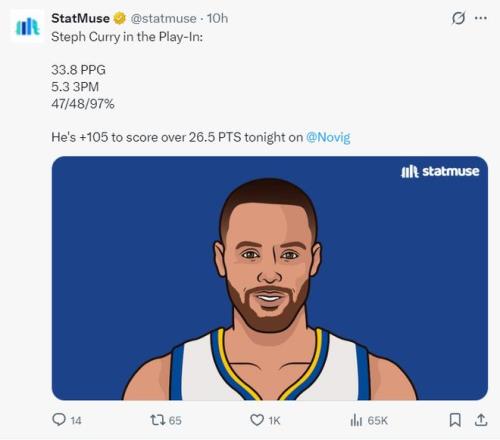 賽前數(shù)據(jù)媒體曬出勇士此前在附加賽的數(shù)據(jù)場均33.8分5.3三分,命中率47%,三分命中率48%,罰球命中率97%非常出色,他附加賽已經(jīng)拿到135分排第三僅次于特雷楊、希羅。