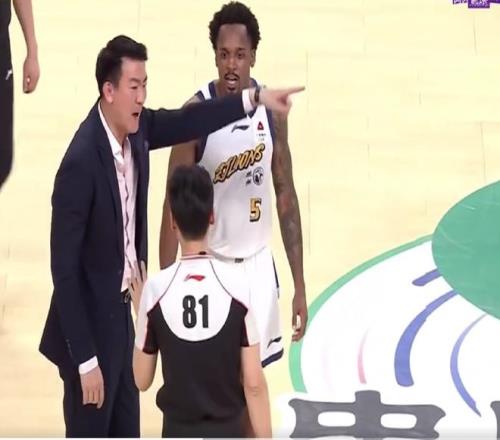 王博指導(dǎo)還用推搡巴里布朗的動(dòng)作向裁判示意,是對(duì)方球員犯規(guī)在先,并不是巴里布朗進(jìn)攻犯規(guī)。
