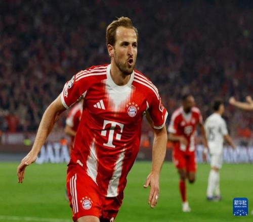 拜仁慕尼黑球員凱恩在比賽中慶祝進球(圖據(jù)新華社)