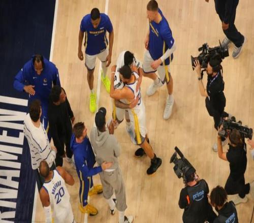 賽后,庫里和追夢擁抱,巴特勒和庫里擁抱,科爾和庫里擁抱,這一幕幕真的很讓人感慨,這支過去十多年間NBA最偉大的團(tuán)隊(duì),在行將落幕的時(shí)刻,依然能打出這樣的比賽。
