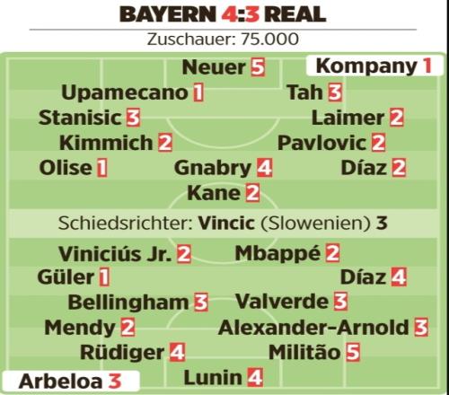 圖片報評分:于帕、居萊爾1分姆巴佩2分諾伊爾5分卡馬文加6分
