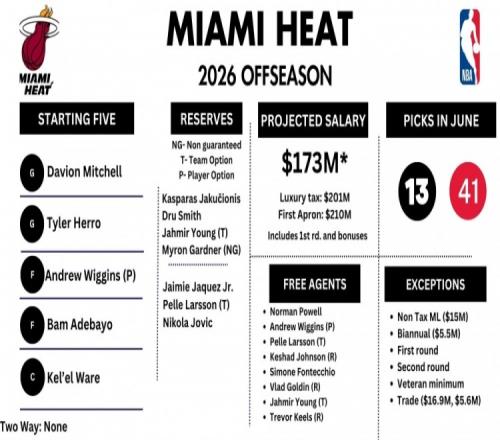 薪資專家Bobby Marks盤點(diǎn)了熱火休賽期的情況,其中鮑威爾將成為完全自由球員,維金斯手握3017萬(wàn)美元球員選項(xiàng)。