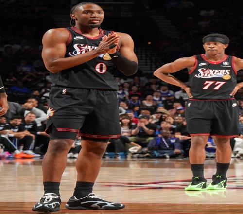 體育播報4月16日宣 附加賽76人主場迎戰(zhàn)魔術(shù),馬克西穿著New Balance個人首款簽名鞋出戰(zhàn)。