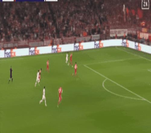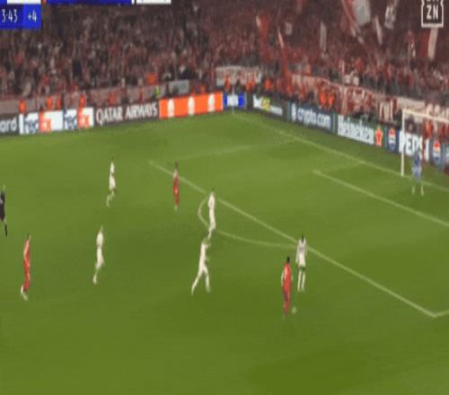 拜仁整個右路,包括但不限于奧利塞,存在感極大:第一球是帕夫洛維奇的得分,第二球卻是右路圍攻良久后,皇馬密集拜仁右路,凱恩中路找到了射門機會。